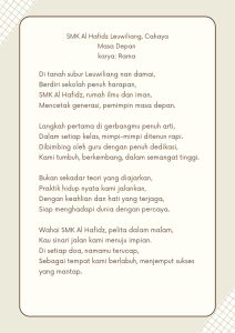 Puisi adalah jendela ke dalam hati, sebuah pelukan lembut yang menyentuh kedalaman emosi kita. Dalam setiap bait dan larik, terdapat cermin yang memantulkan kegembiraan, kesedihan, harapan, dan cinta yang tak terhingga. Kami menulis bersama Komunitas Pena Inspiratif, kita memiliki cerita unik yang menunggu untuk diungkapkan, dan dengan puisi, pada akhirnya kita dapat menemukan cara untuk menyentuh dan menginspirasi banyak orang.Kata-kata menjadi jembatan yang menghubungkan kita, menjalin hubungan yang lebih dalam melalui ritme dan rima. Setiap puisi adalah sebuah ciptaan yang lahir dari kekayaan pengalaman dan rasa, dan kami sangat bersemangat untuk menyaksikan bagaimana setiap baris dan sajak menggambarkan dunia dunia kita.Berikut adalah Maha Karya dari Komunitas Pena Inspiratif:1. Muhammad Riski Andika