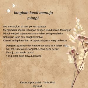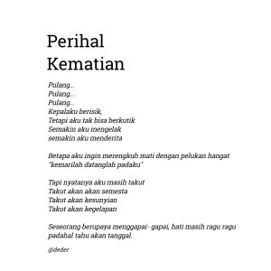 Puisi adalah jendela ke dalam hati, sebuah pelukan lembut yang menyentuh kedalaman emosi kita. Dalam setiap bait dan larik, terdapat cermin yang memantulkan kegembiraan, kesedihan, harapan, dan cinta yang tak terhingga. Kami menulis bersama Komunitas Pena Inspiratif, kita memiliki cerita unik yang menunggu untuk diungkapkan, dan dengan puisi, pada akhirnya kita dapat menemukan cara untuk menyentuh dan menginspirasi banyak orang.Kata-kata menjadi jembatan yang menghubungkan kita, menjalin hubungan yang lebih dalam melalui ritme dan rima. Setiap puisi adalah sebuah ciptaan yang lahir dari kekayaan pengalaman dan rasa, dan kami sangat bersemangat untuk menyaksikan bagaimana setiap baris dan sajak menggambarkan dunia dunia kita.Berikut adalah Maha Karya dari Komunitas Pena Inspiratif:1. Muhammad Riski Andika