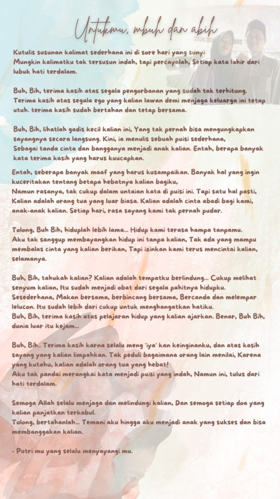 Dengan penuh rasa syukur terima kasih kepada calon generasi terbaik di masa depan. Semoga setiap puisi yang dibacakan malam ini membawa kehangatan dan kebahagiaan ke dalam hati kita semua. Aamiin